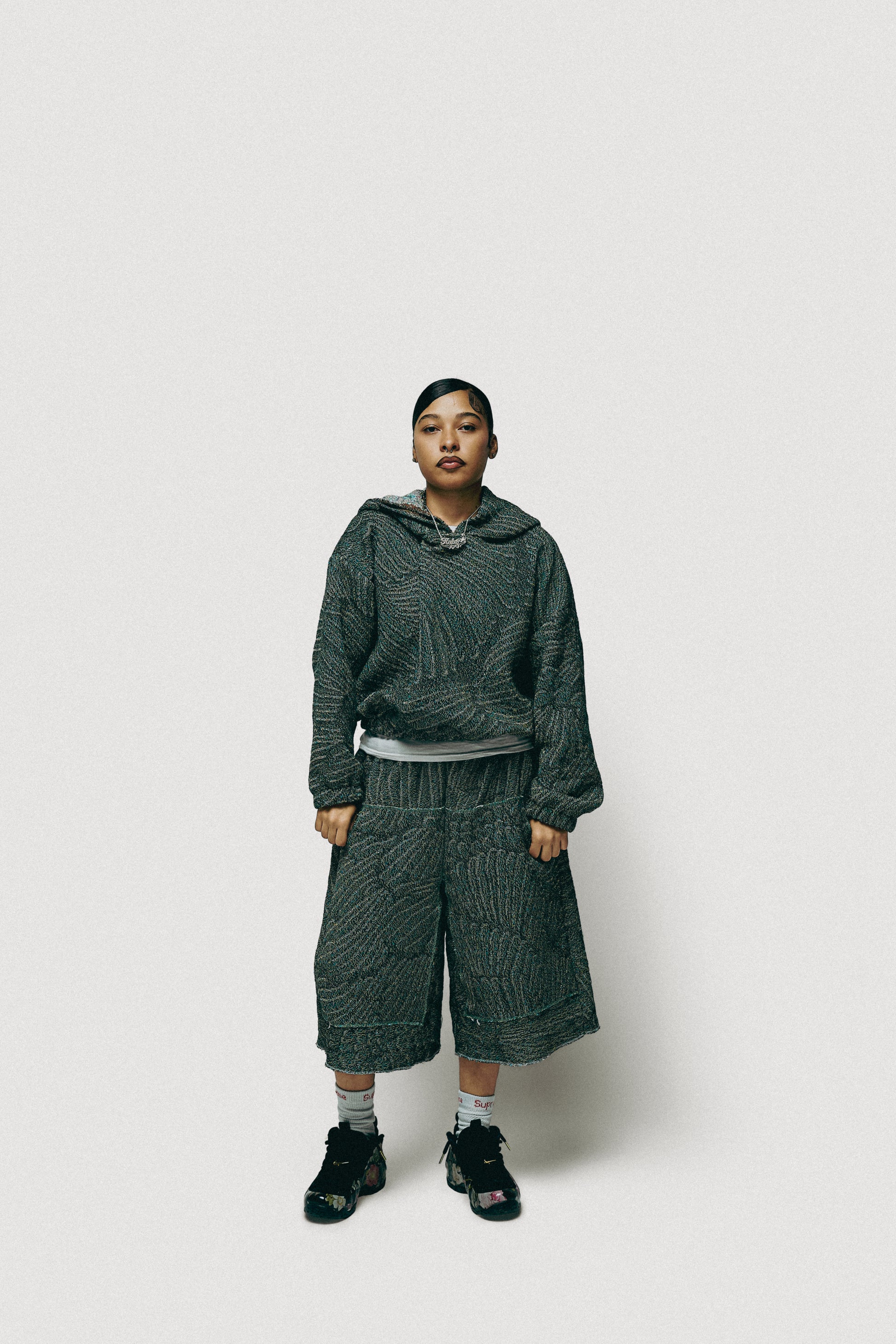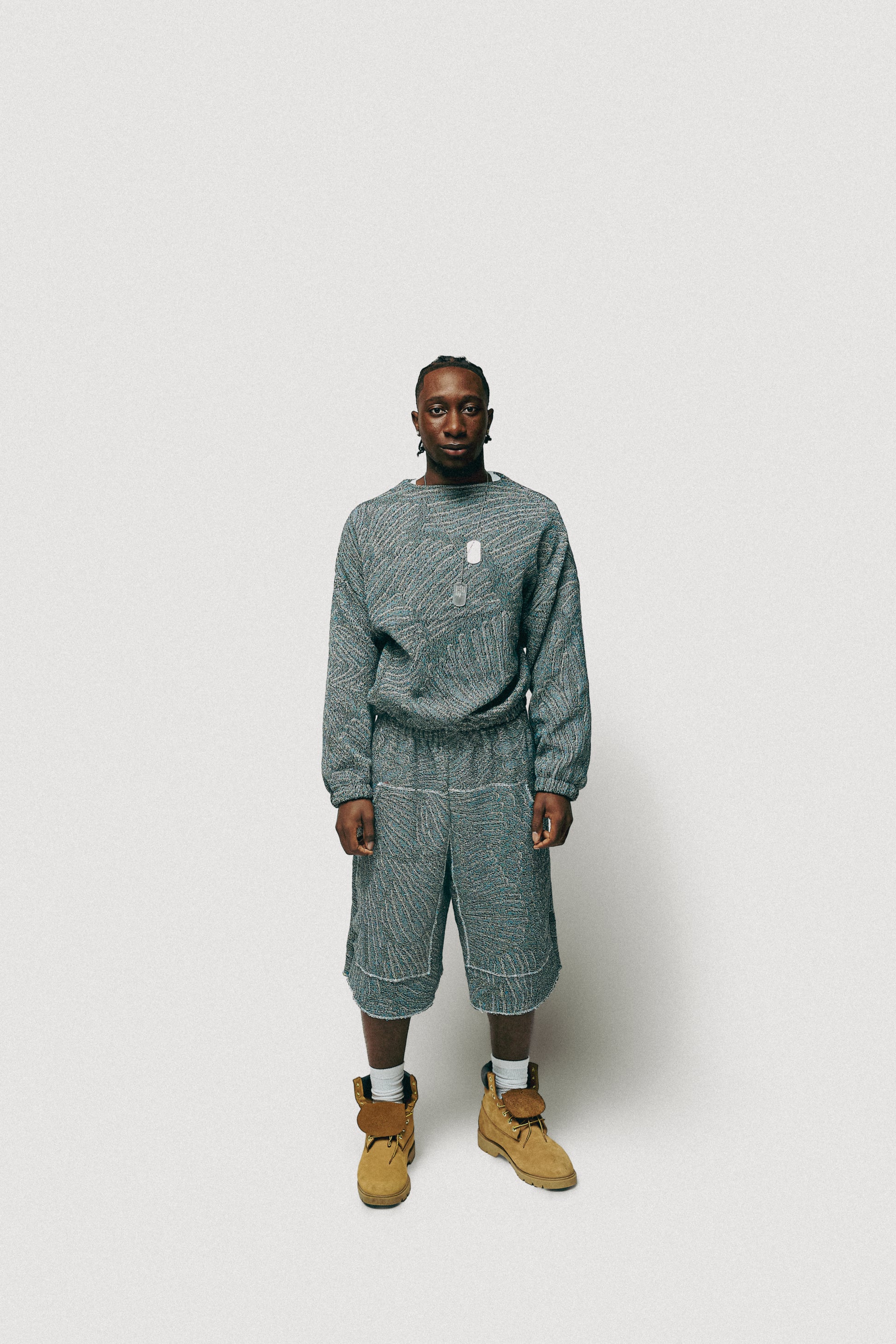 Workwear energy, gallery detail. These wide-leg shorts are made from woven tapestry with reinforced double-knee panels that act as a pocket. The elastic waistband delivers day-long comfort with a modern silhouette.